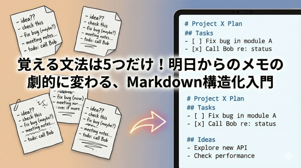 覚える文法は5つだけ!明日からのメモの取り方が劇的に変わる、Markdown構造化入門