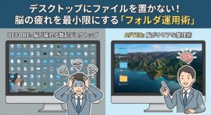 拡張子を表示できるようになったら、次はデスクトップやフォルダの整理をしてはいかがでしょうか。以下の記事もチェックしてみてください。